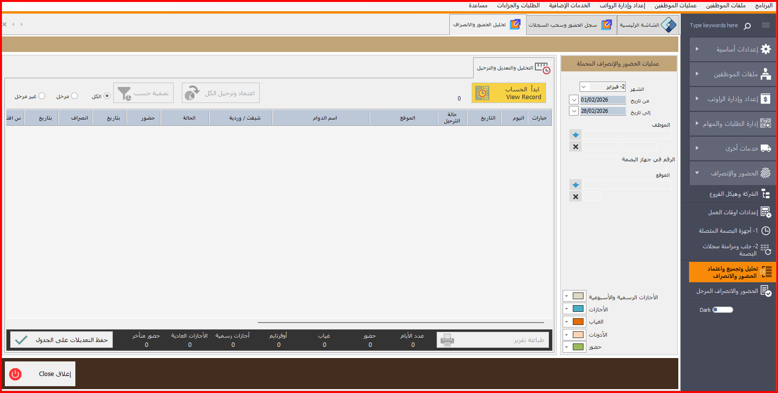 بعد إتمام عملية التحليل، يقوم البرنامج بترحيل نتائج الحضور تلقائيًا إلى ملف كل موظف داخل النظام.